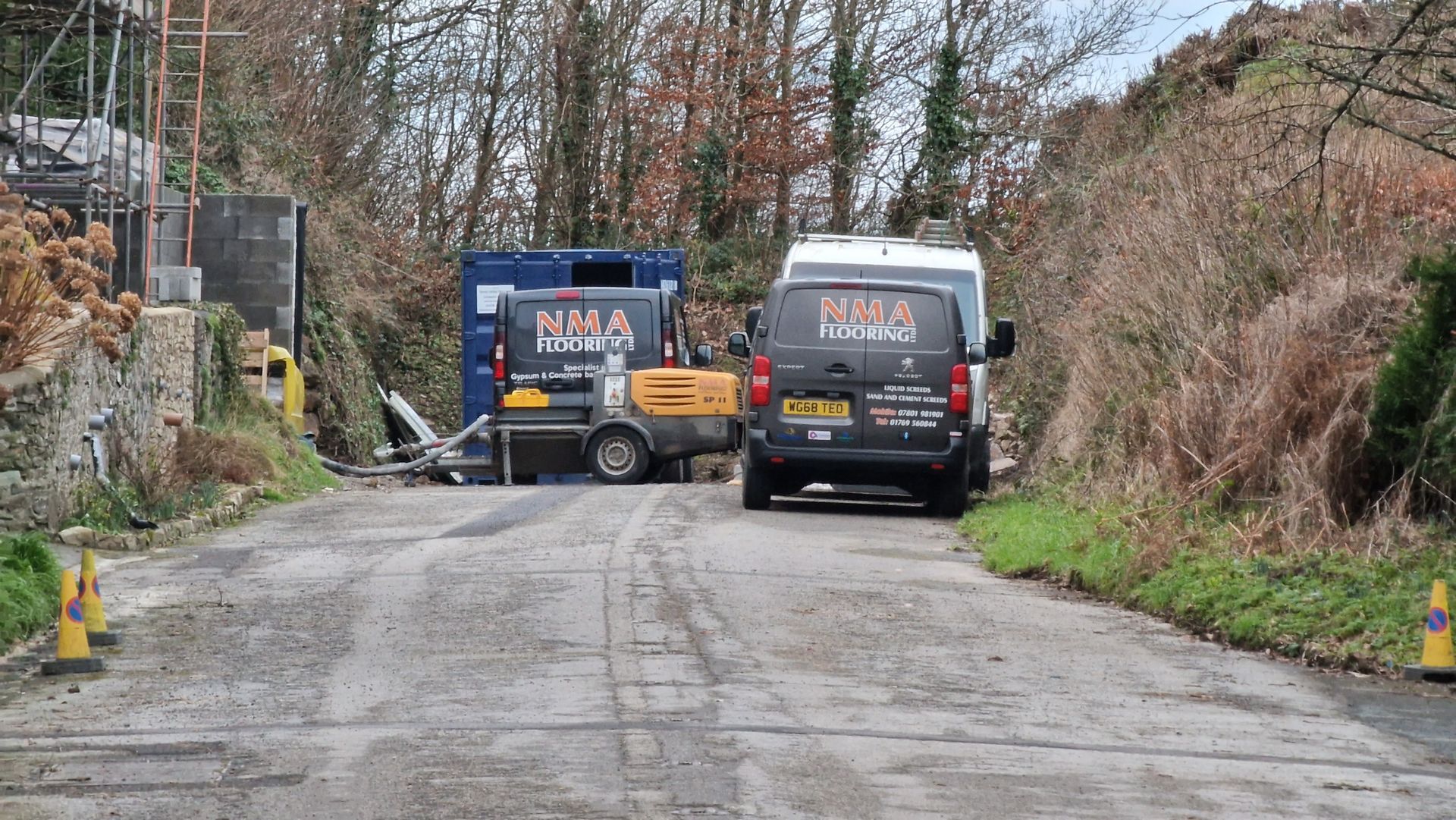 of 112m2 of gyvlon Thermio laid at an average of 70mm for us. Steven and his colleague were punctual and professional. They poured the floor and were finished in less than half a day leaving the site clean and tidy. Maen Karne Concrete Products supplying 7.9m3 on the dot to this rural location. We would have no hesitation in recommending NMA flooring to anyone looking for a liquid screed. 5* service